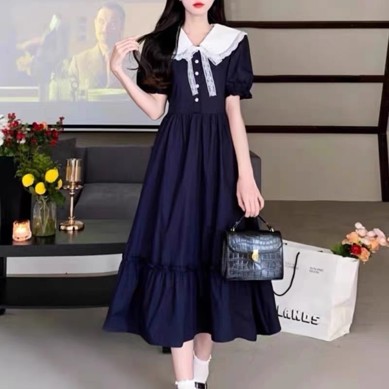 大きめの襟とふんわりフリルが魅力的なレトロガーリーなワンピース♡