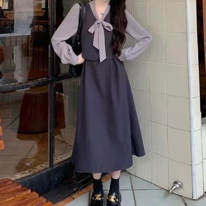 きれいめガーリー♡セットアップ風ボウタイリボンワンピース E1545