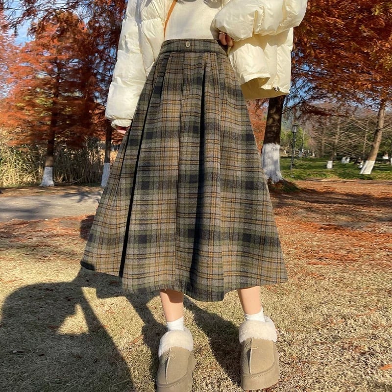 レトロガーリー♡ミドル丈チェック柄スカート E1557