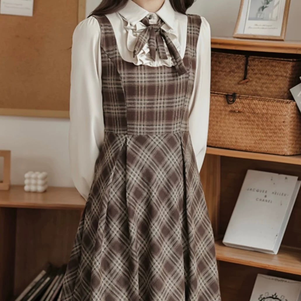 フレンチレトロ♡チェック柄フェイクレイヤードワンピース E1559