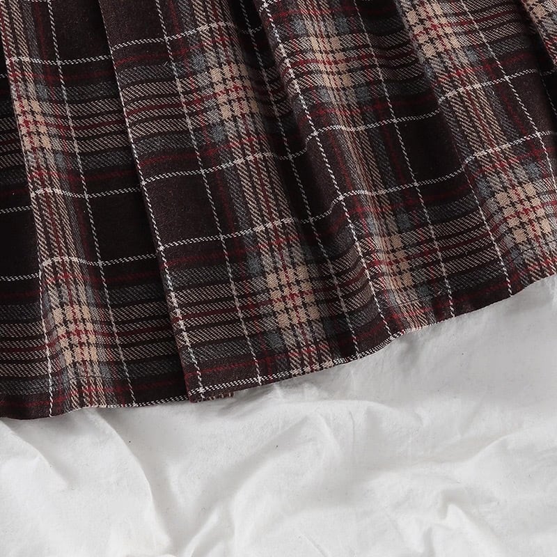 レトロガーリー♡ニット+チェックスカートセットアップ E1562