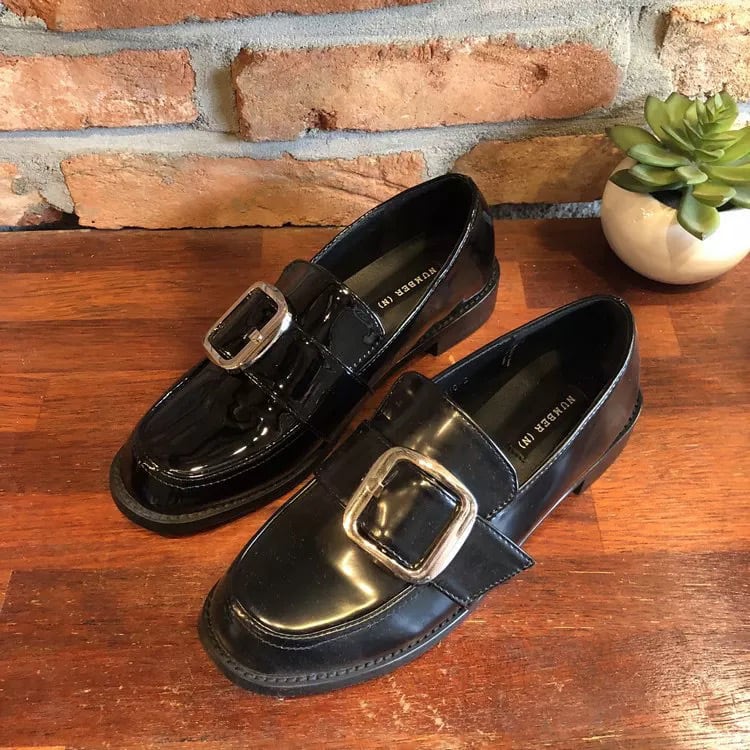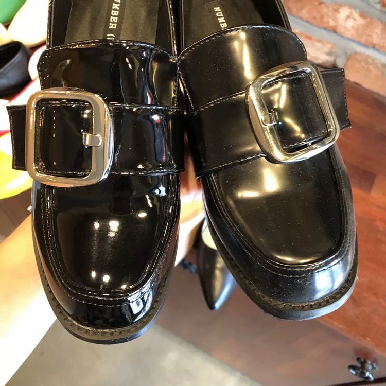 カジュアルガーリー♡バックル付きエナメルローファー G0505
