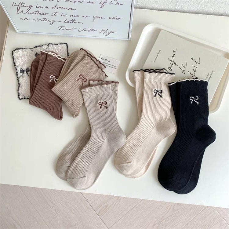 上品なリボン刺繍がポイントの5足ソックスセット♡