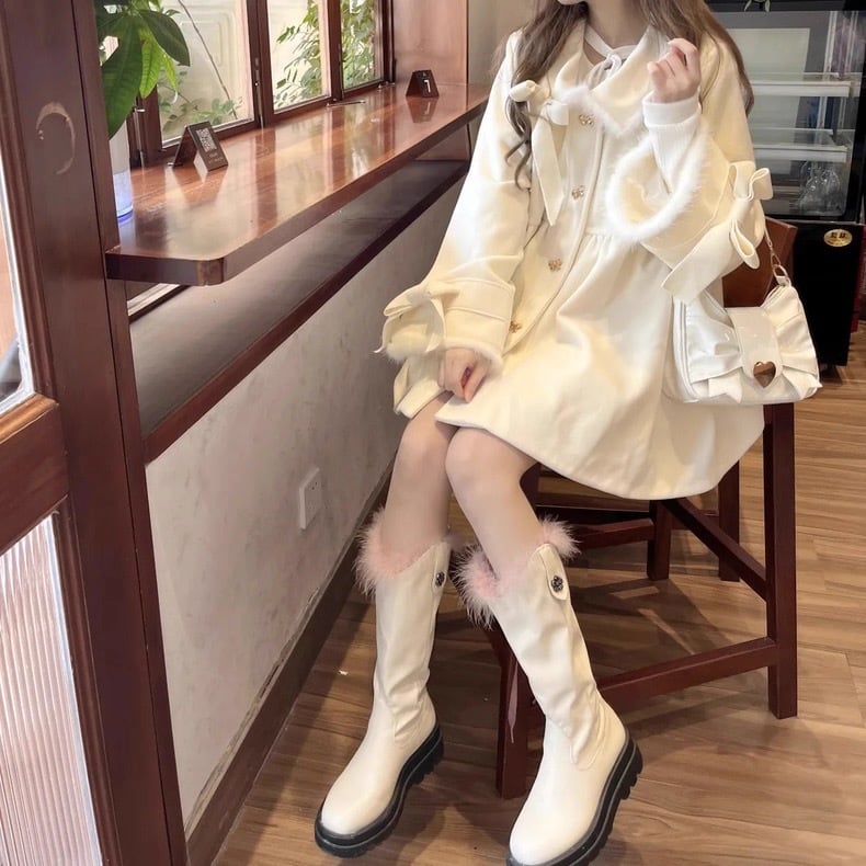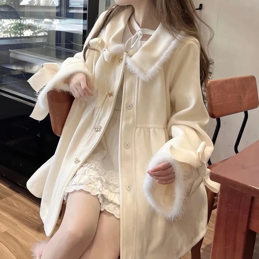 ウールとフリース素材で暖かいホワイトカラーの厚手コート♡