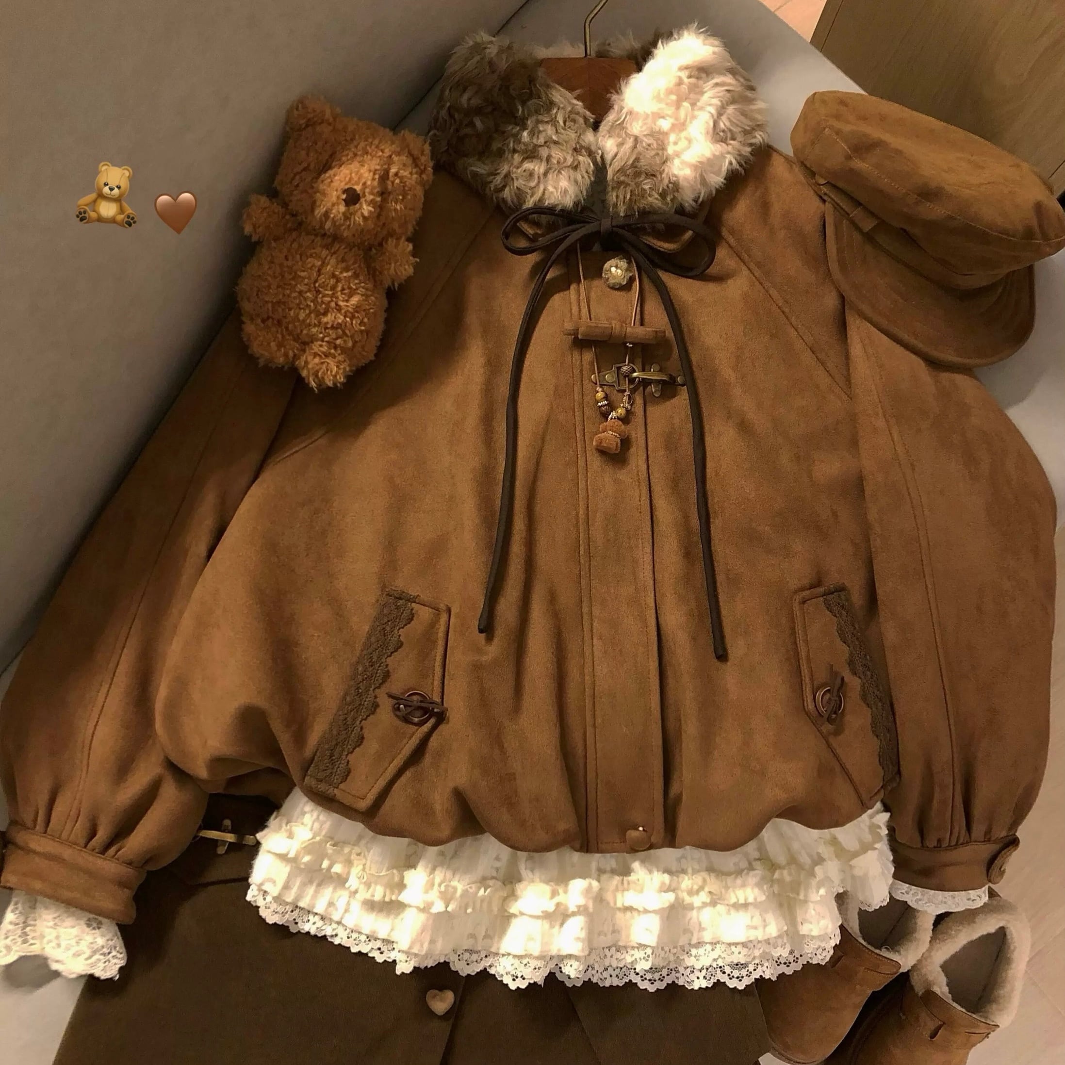 ガーリー♡ブラウス付きファー襟リボンコート E1585