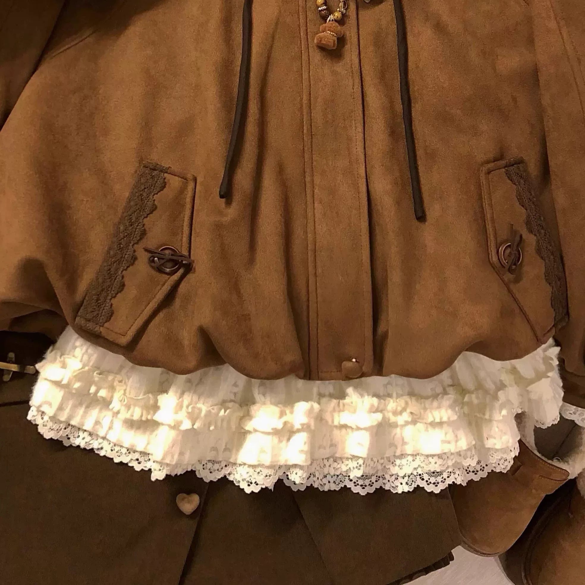 リボンとフリルブラウス風デザインで、羽織るだけで甘めスタイルに♪