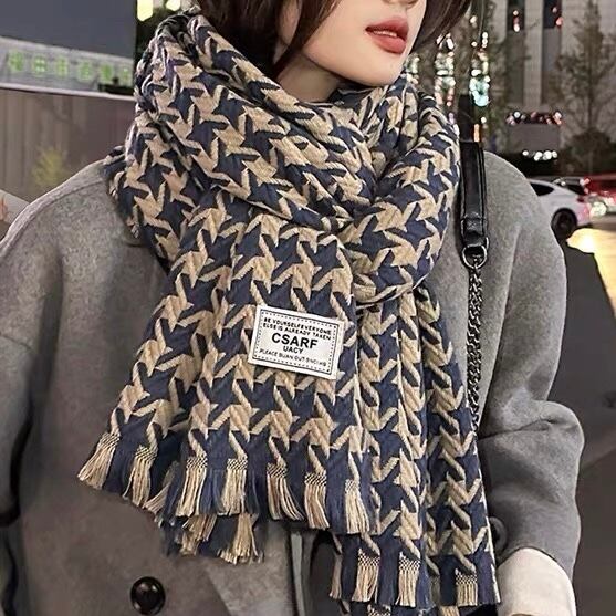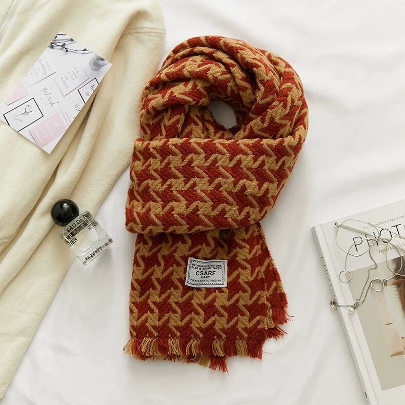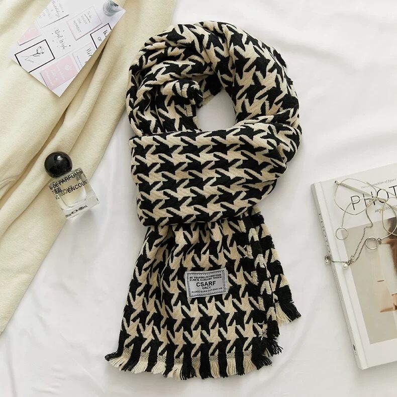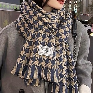 大人可愛い♡ 千鳥柄 フリンジマフラー G0511