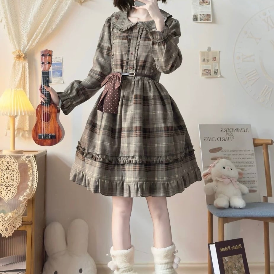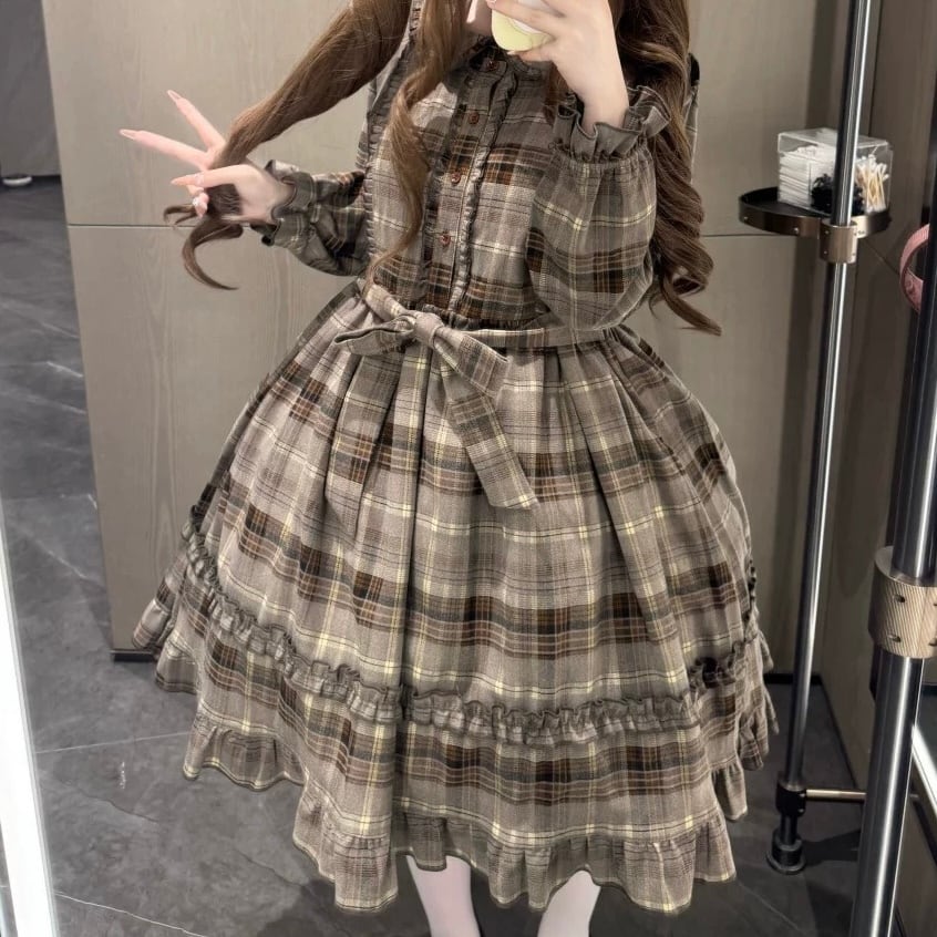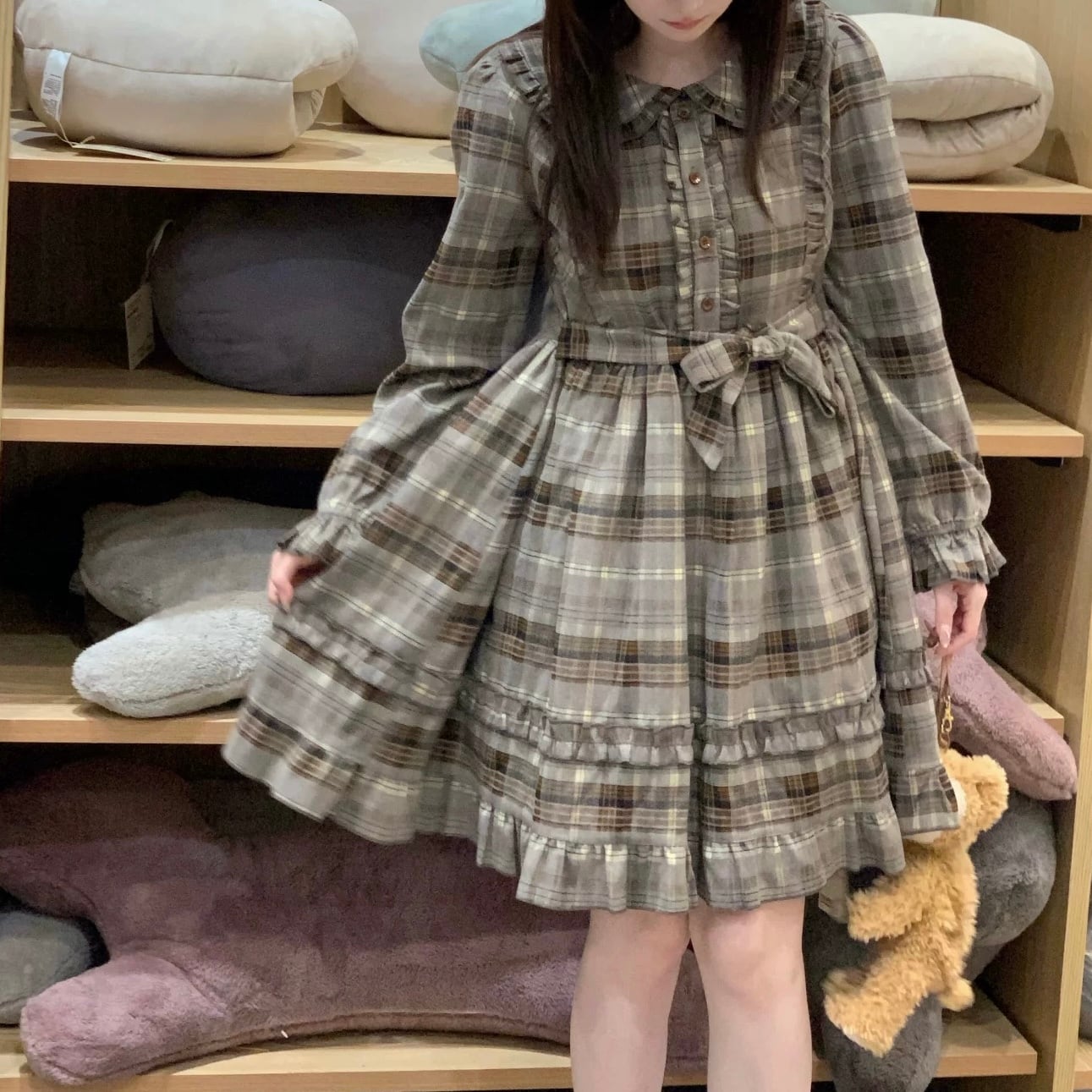 落ち着いたチェック柄に、フリルデザインをあしらった
