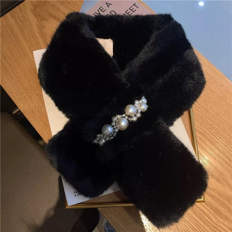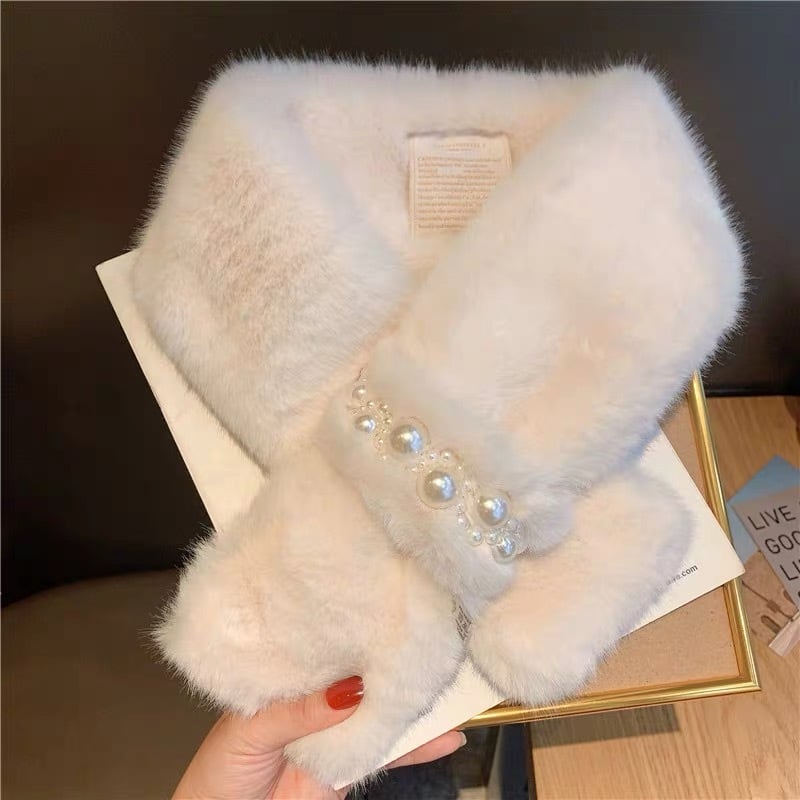 大人可愛い♡パール付きフェイクラビットファーマフラー G0512