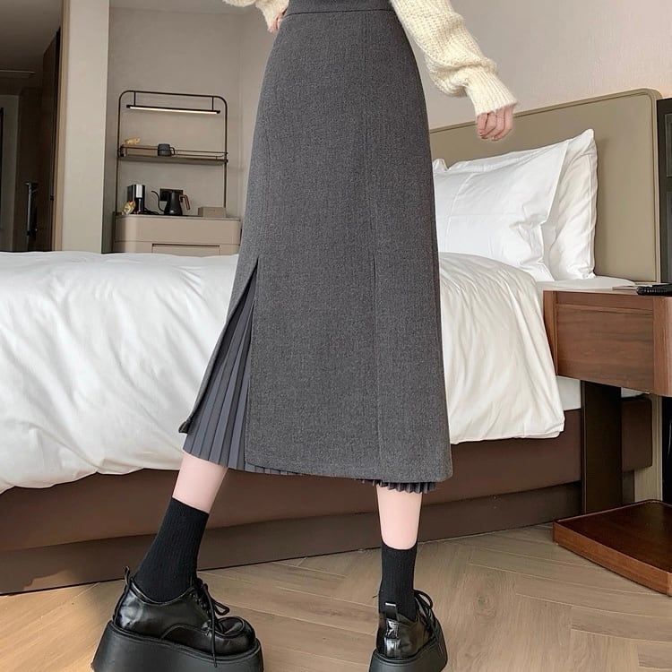 スリットとインナープリーツ入りで、動きやすさと軽やかな印象をプラス♪