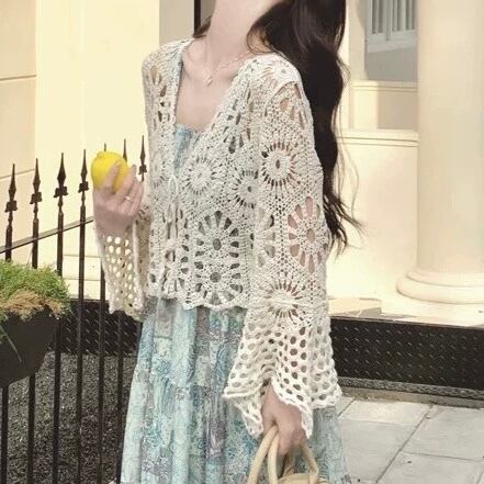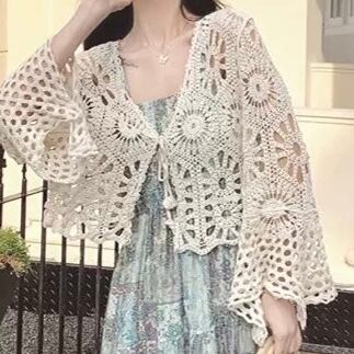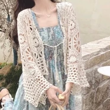 軽やかな透かし編みデザインのカーディガン♡