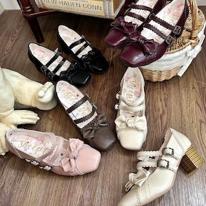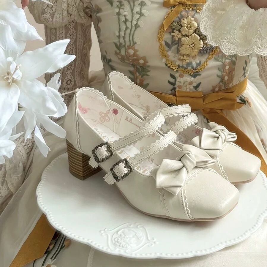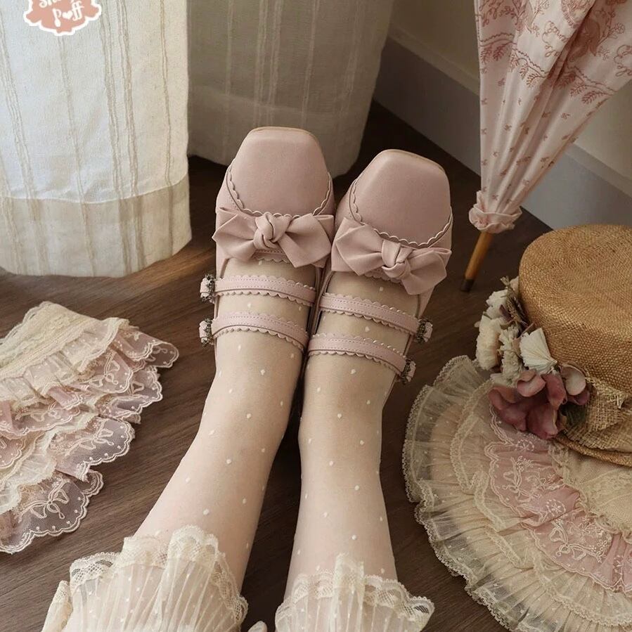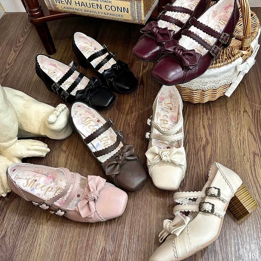 レトロガーリー♡リボン付きガーリーパンプス G0515