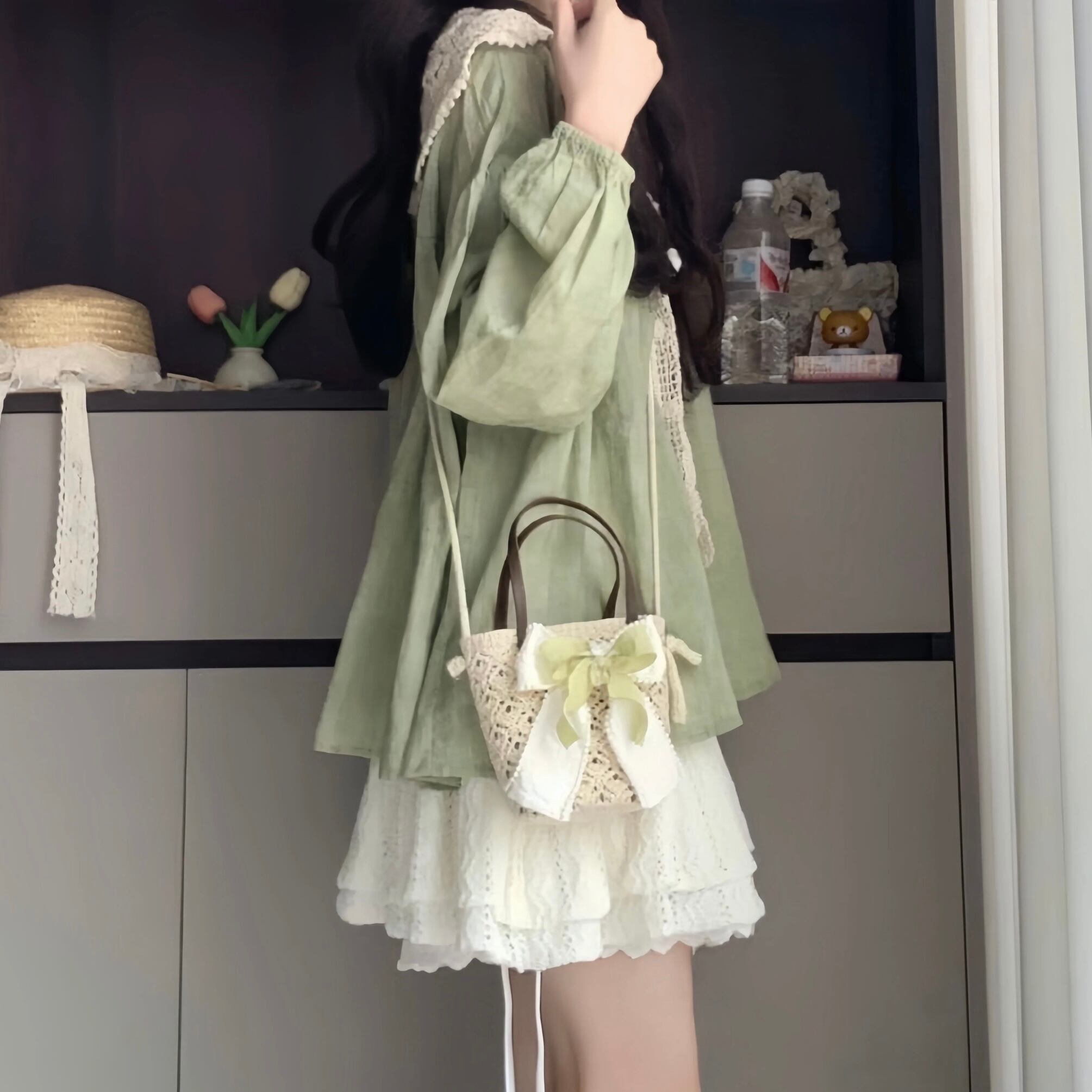ナチュラルなグリーンとブラウスとレーススカートの2点セット♡