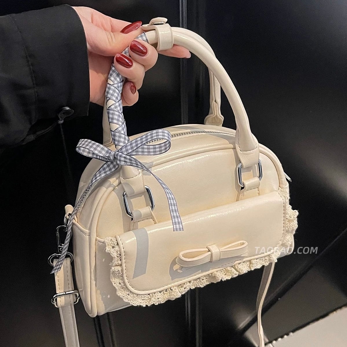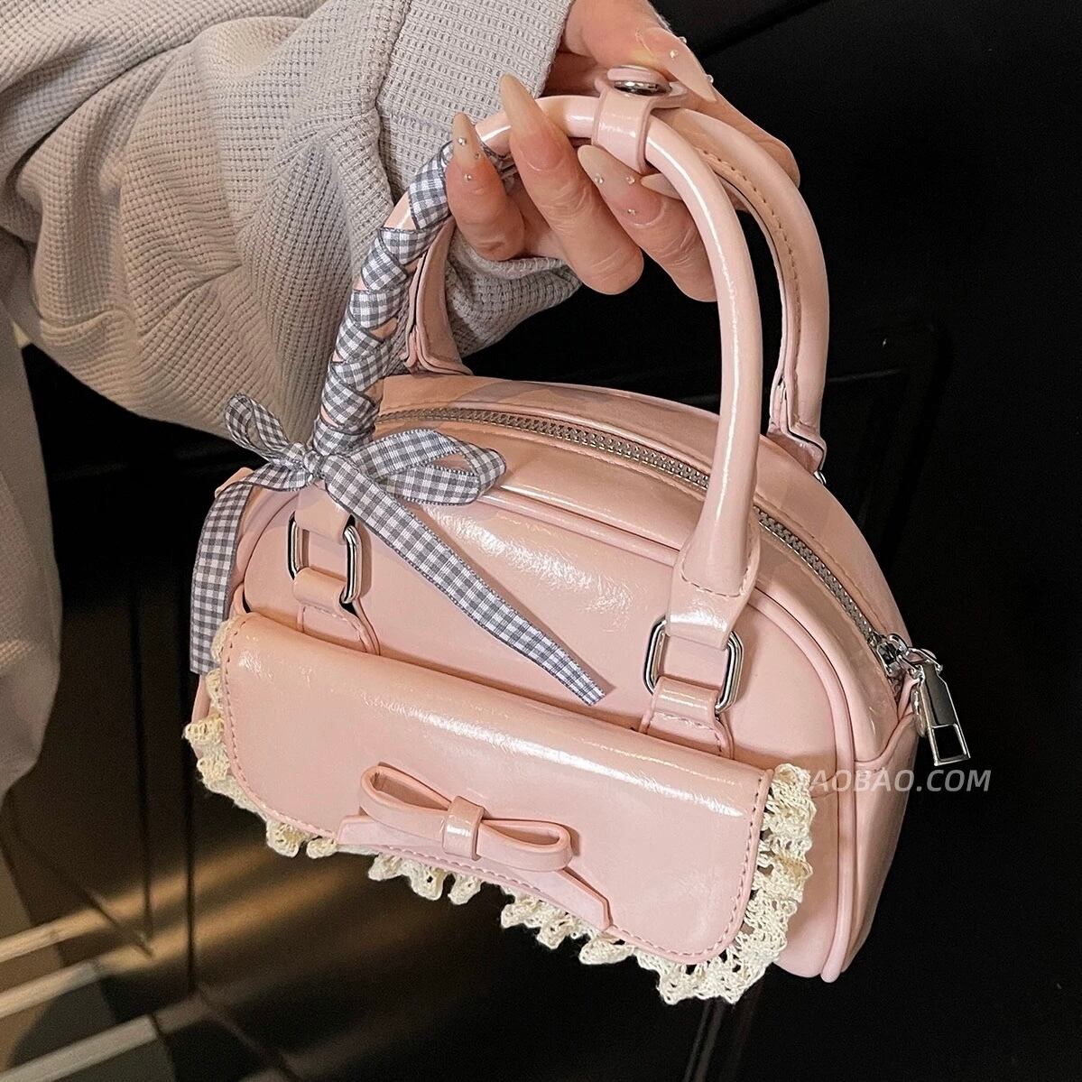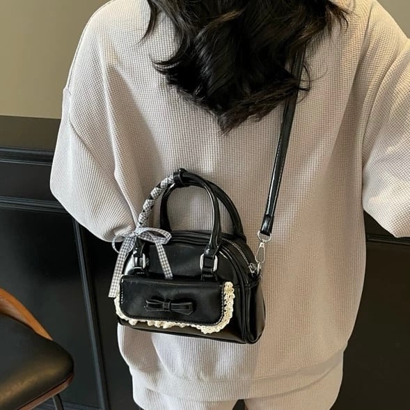 リボンとレースデザインが目を惹くミニバッグ♡
