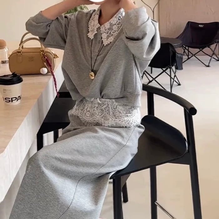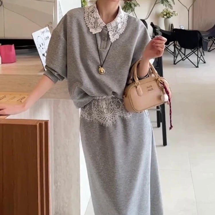 カジュアルなグレー生地に繊細なレースが大人可愛い♪