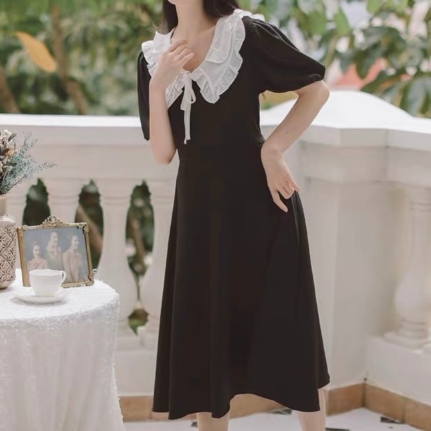 ナチュラルガーリー♡半袖フリル襟ワンピース F0883