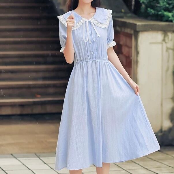 レースの丸襟とリボンが可愛い清楚系ワンピース♡