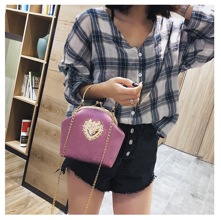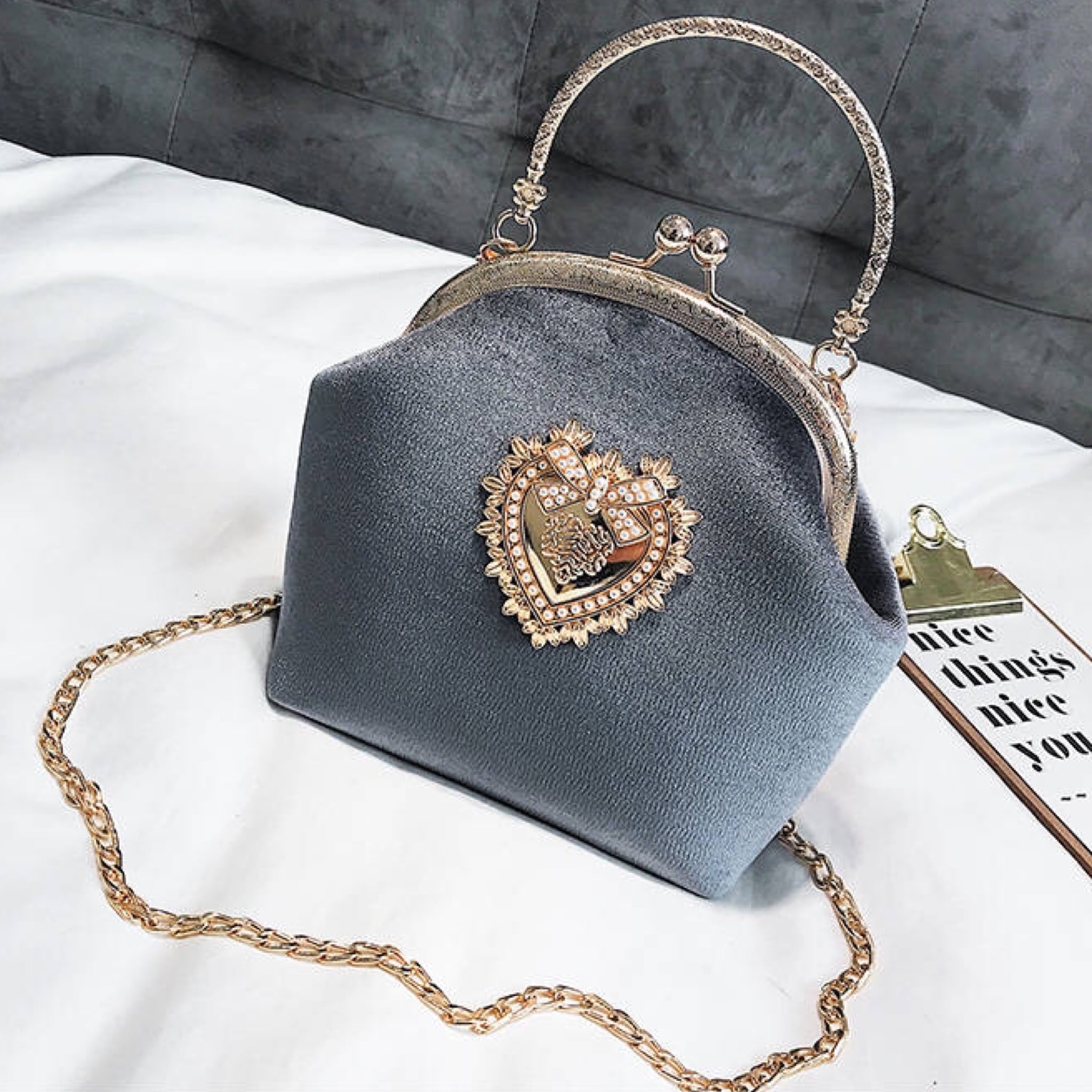 ベロア素材とゴールドの装飾が可愛いバッグ♡