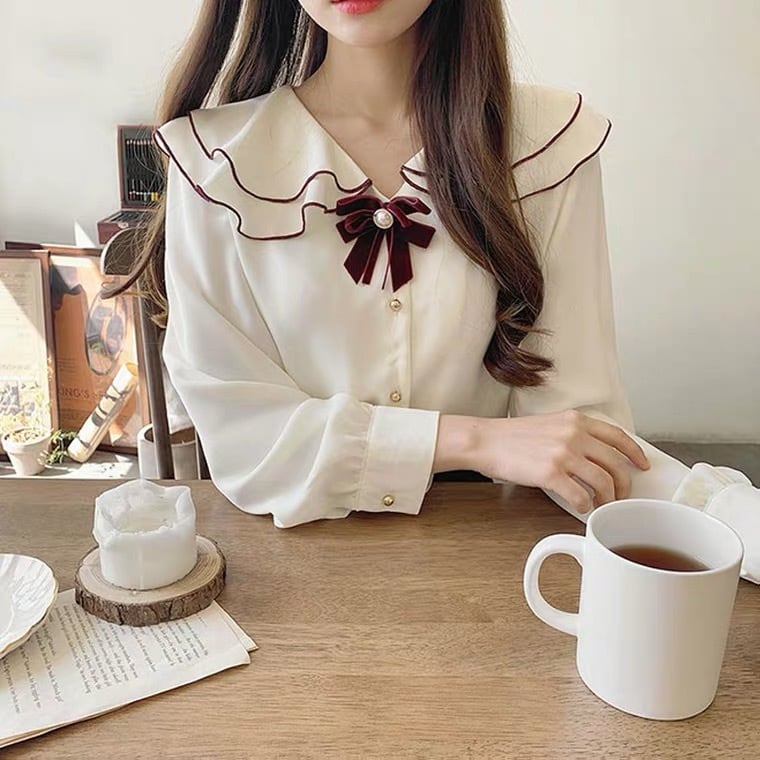 レトロガーリー♡ベルベットリボンブローチブラウス A0451