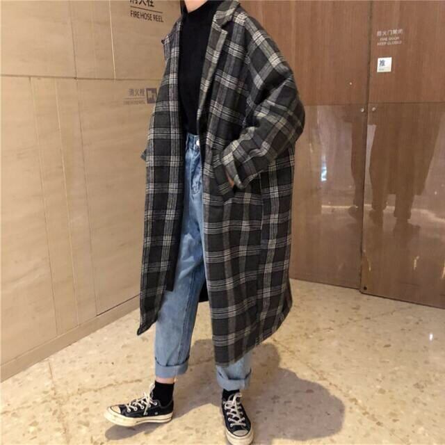 グレンチェック柄が秋冬にぴったりなロングコート♡