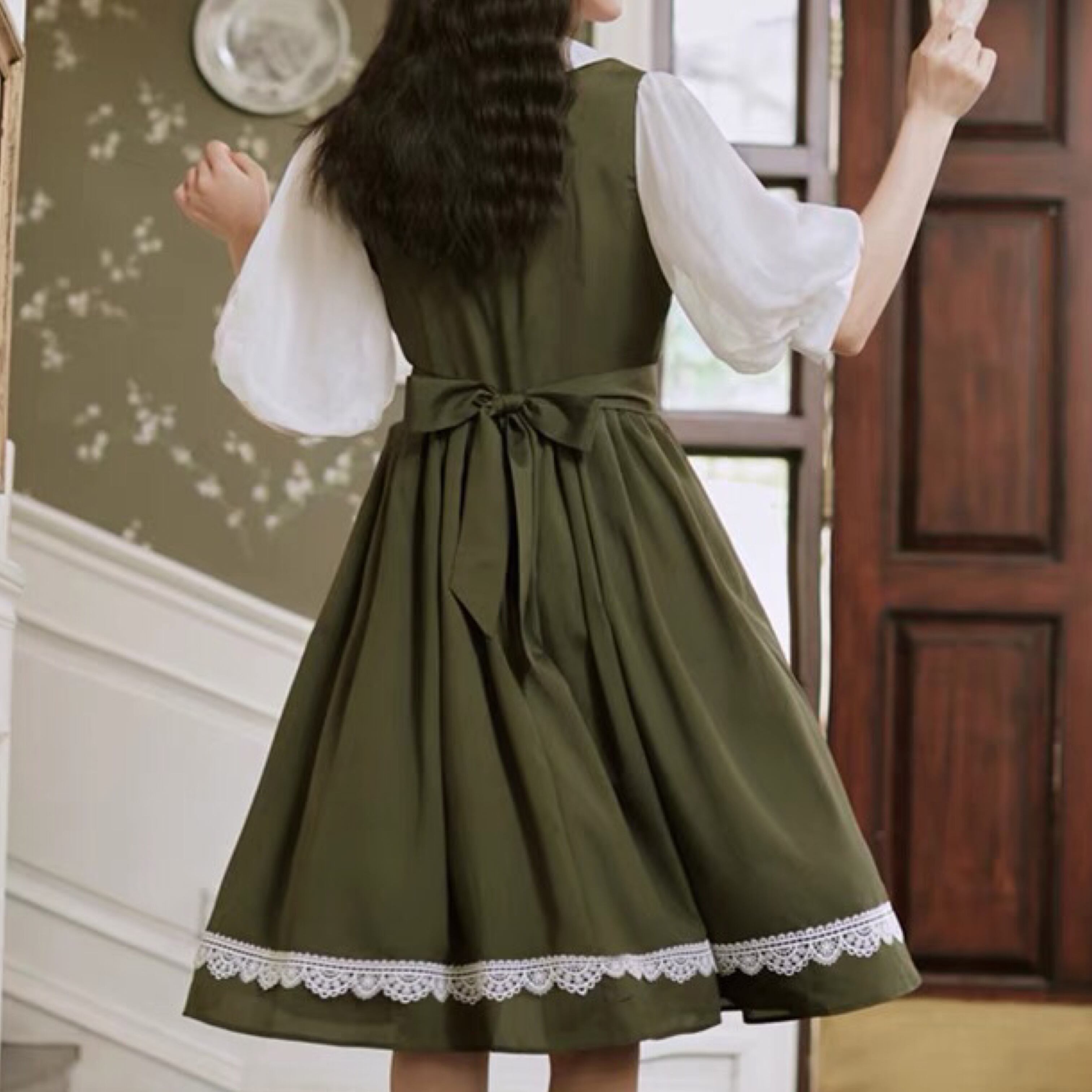 【桜井ひかる様着用】レトロガーリー♡パフスリーブドッキング半袖ワンピース B0416