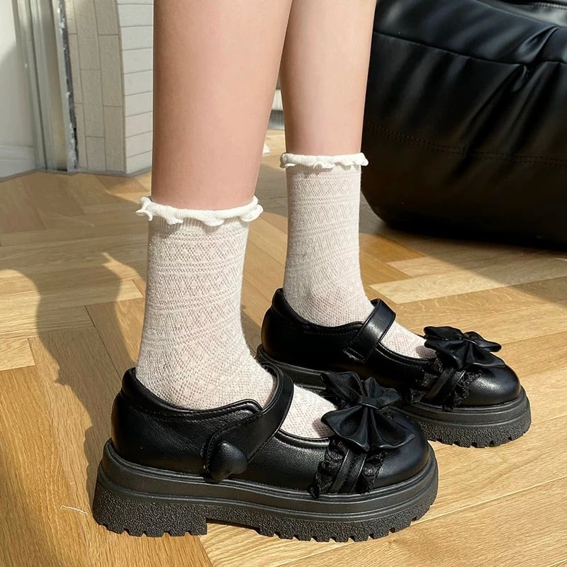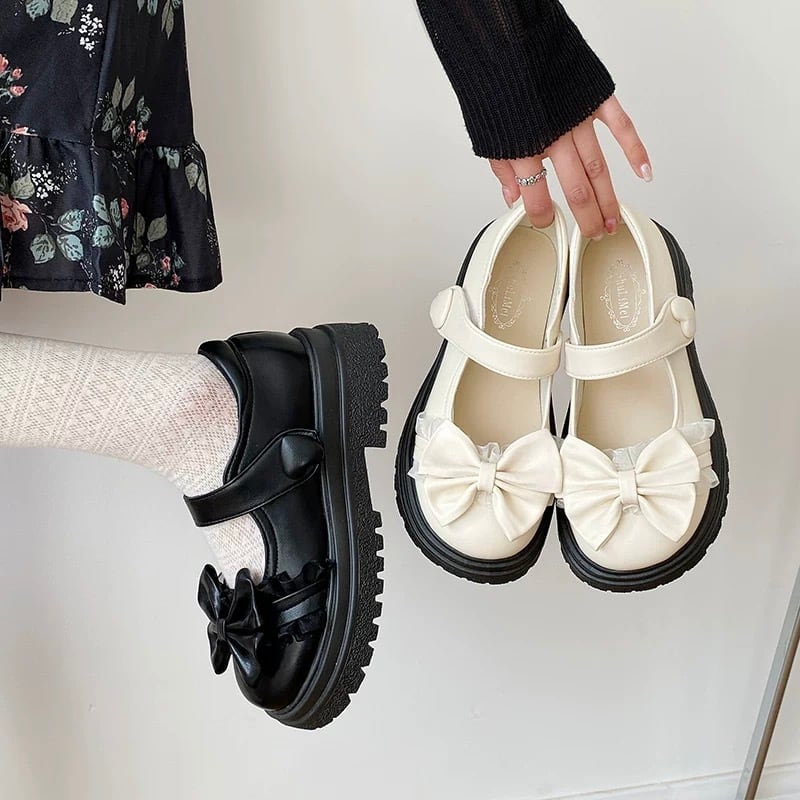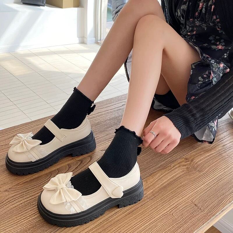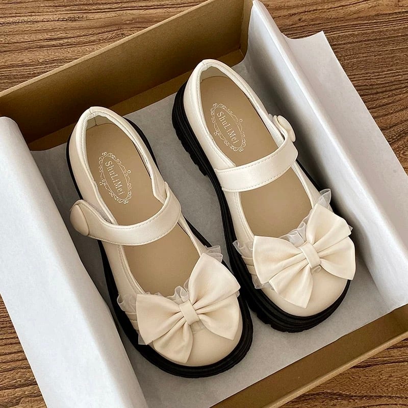 レトロガーリー♡ラウンドトゥストラップリボンシューズ C0221