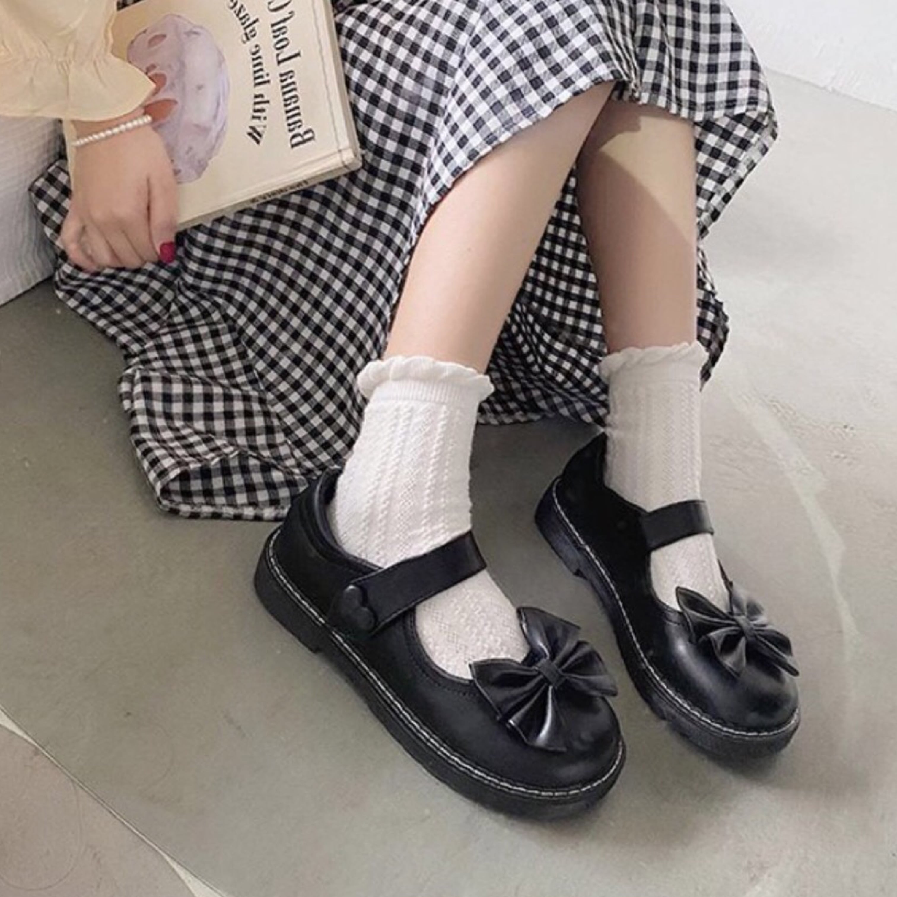 リボンが可愛いレトロスタイルのローヒールシューズ♡