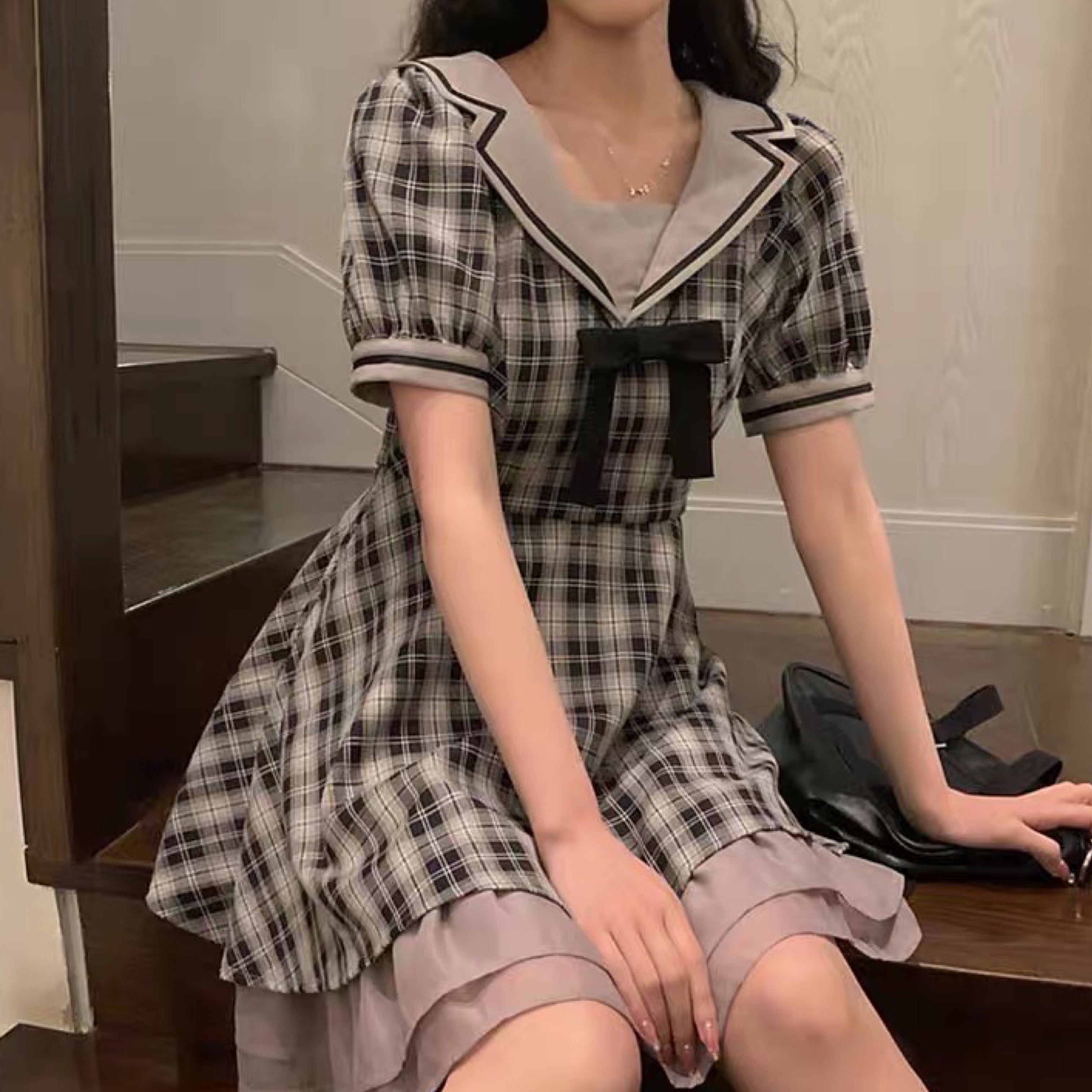 レトロガーリー♡チェック柄セーラーワンピース F0620