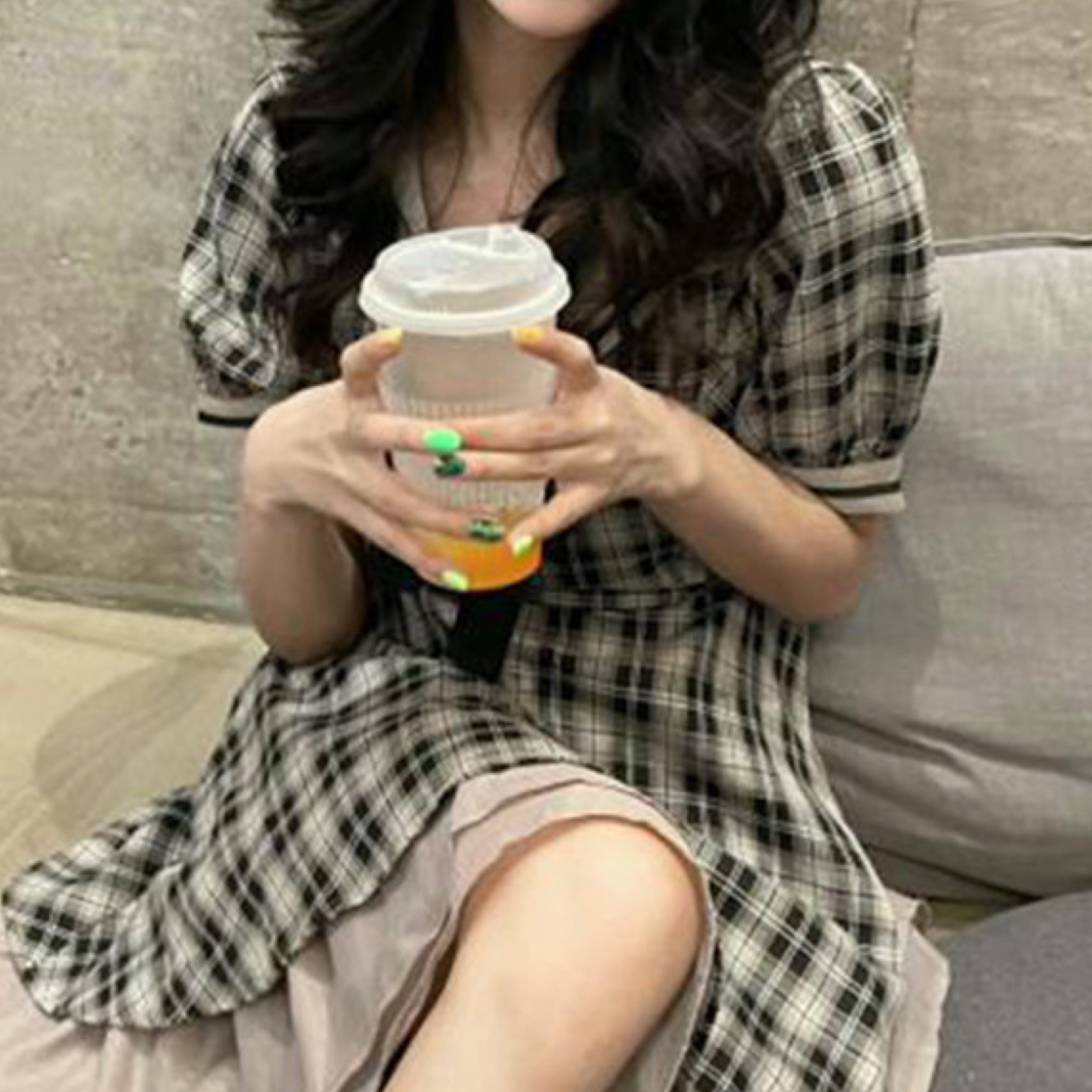 レトロなチェック柄が可愛い半袖ワンピース♡