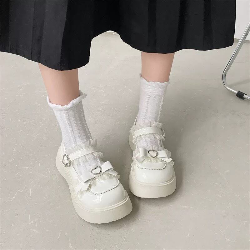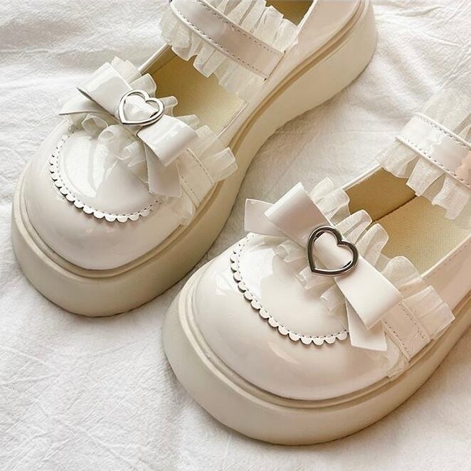 スウィートガーリー♡ハートリボン&レースストラップシューズ G0410
