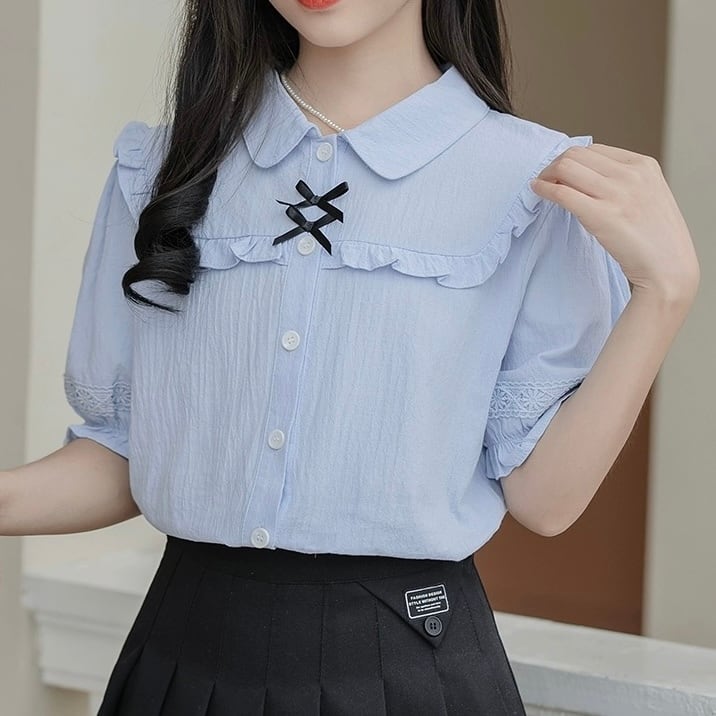 ガーリー♡パフスリーブフリルブラウス F0786