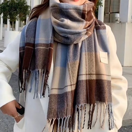 フェミニン♡チェック柄ボリュームマフラー G0459